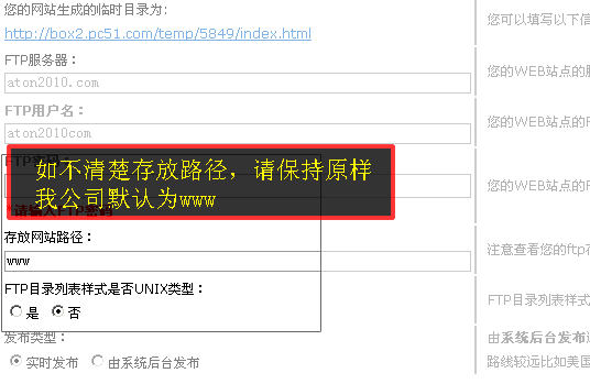 如果是独立购买的亚东建站专家,还需要输入ftp服务器中的网站目录等信息,如不清楚请保持原样,或者咨询主机提供商业。